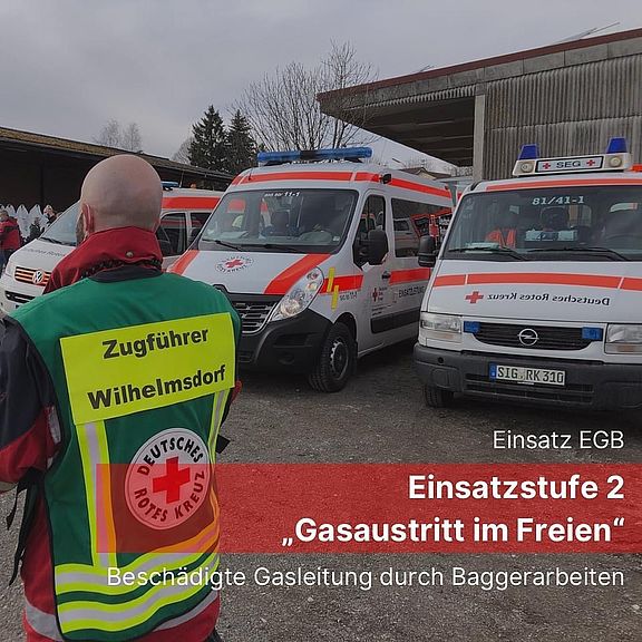 Nach Rücksprache mit dem Einsatzleiter der Feuerwehr mussten die umliegenden Häuser umgehend evakuiert werden. Der Einsatzleiter des DRK Wilhelmsdorf alarmierte daraufhin weitere Kräfte aus Illmensee und Pfullendorf (beides DRK). Bereits auf Anfahrt befanden sich die Kameraden des DRK Altshausen.