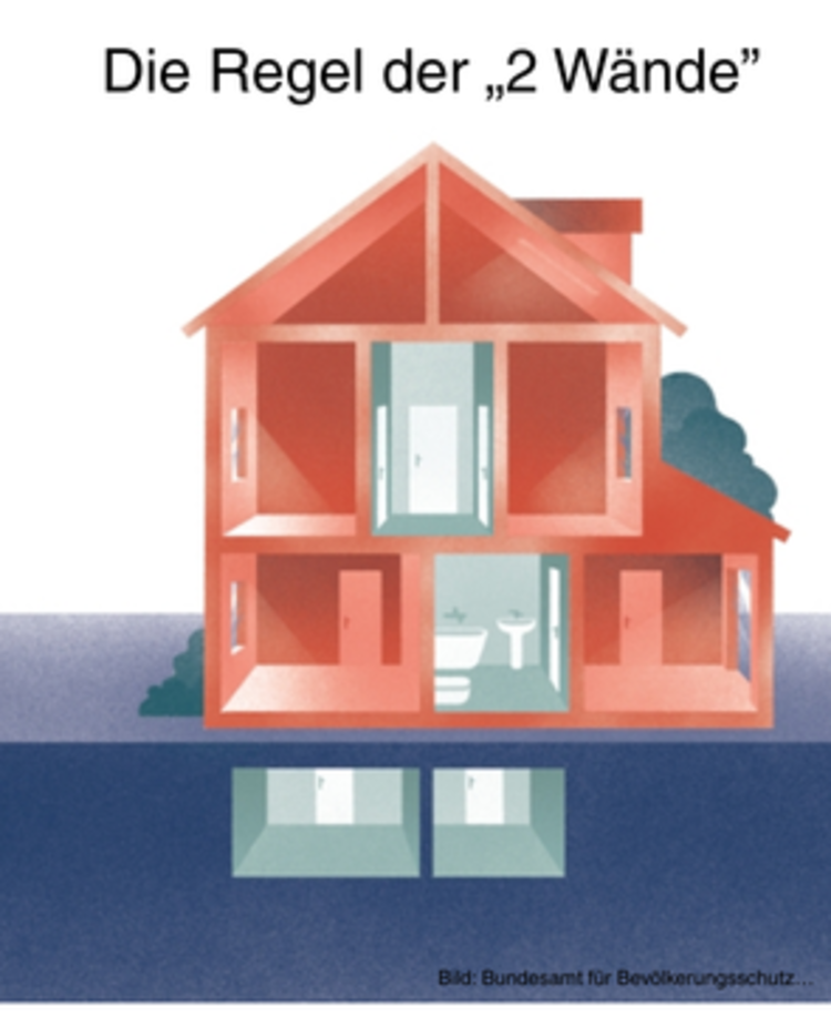 Gebäude in Deutschland bestehen aber größtenteils aus einer soliden Bausubstanz. Innenliegende Räume mit möglichst wenigen Außenwänden und Türen sowie ohne Fenster bieten deshalb einen wirksamen Schutz. So entstehen bei einer Explosion keine Verletzungen durch zum Beispiel Glassplitter.